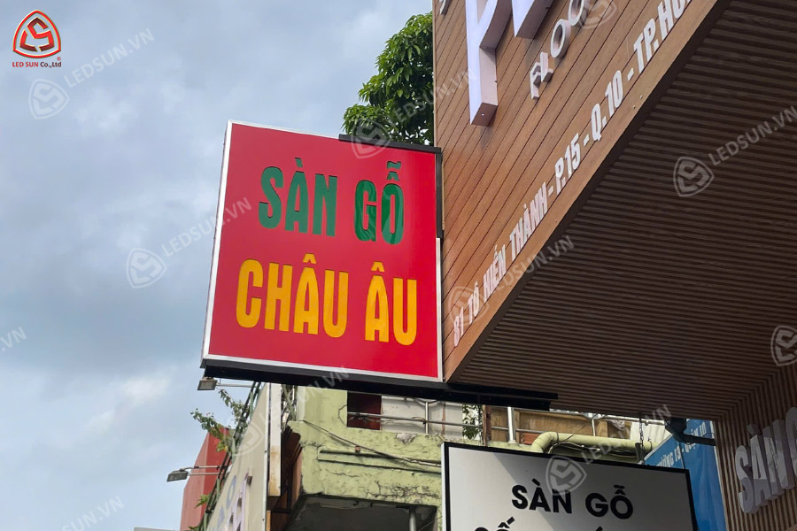 Hộp đèn alu ép mica cho của hàng sàn gỗ châu âu