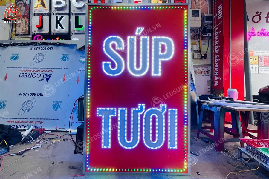 Led Sun chuyên thiết kế, sản xuất và lắp đặt hộp đèn LED chất lượng cao, đáp ứng mọi nhu cầu quảng cáo. Chúng tôi cung cấp đa dạng mẫu mã như hộp đèn siêu mỏng, mica hút nổi, chữ nổi LED, đảm bảo thẩm mỹ và độ bền. Với đội ngũ chuyên nghiệp, thi công nhanh chóng, giá cả cạnh tranh và chính sách bảo hành dài hạn, Led Sun là lựa chọn tin cậy cho doanh nghiệp.